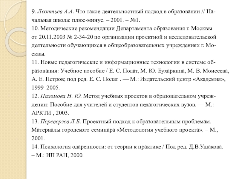13. Переверзев Л.Б. Проектный подход к образовательным проблемам.