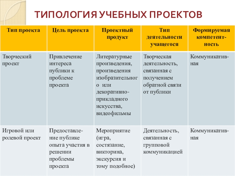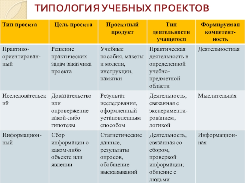 ТИПОЛОГИЯ УЧЕБНЫХ ПРОЕКТОВ