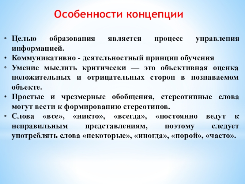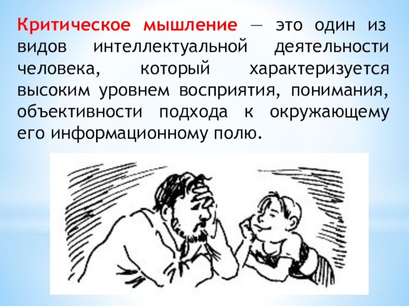 Критическое мышление - «особый вид умственной деятельности, позволяющий человеку вынести здравое суждение о предложенной ему точке зрения или модели поведения»
