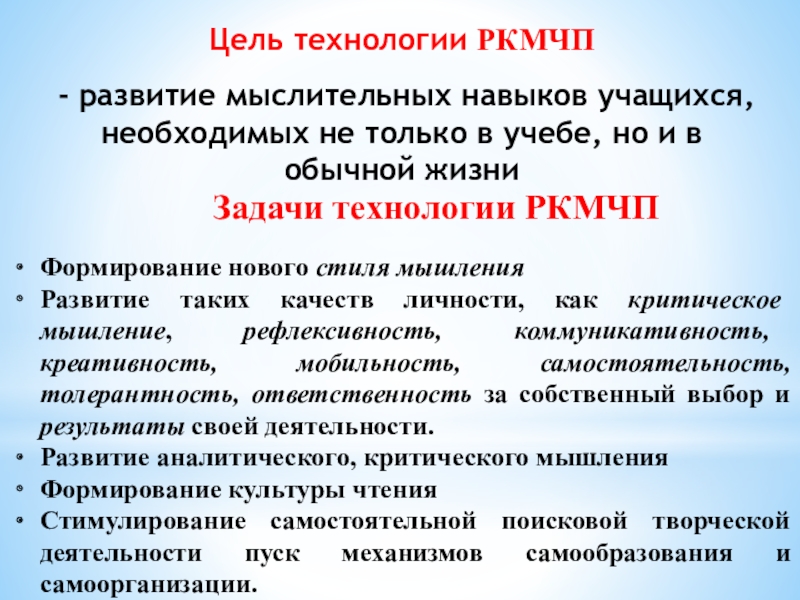 Задачи технологии РКМЧП