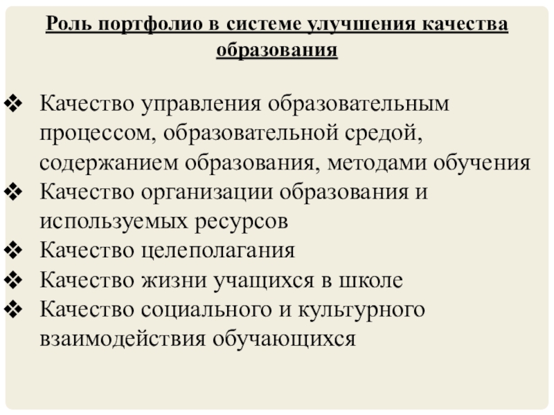 Слайд 15Роль портфолио в системе улучшения качества образования