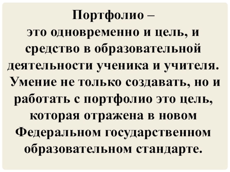 Умение не только создавать, но и работать с портфолио это цель, которая отражена в новом Федеральном государственном образовательном стандарте.