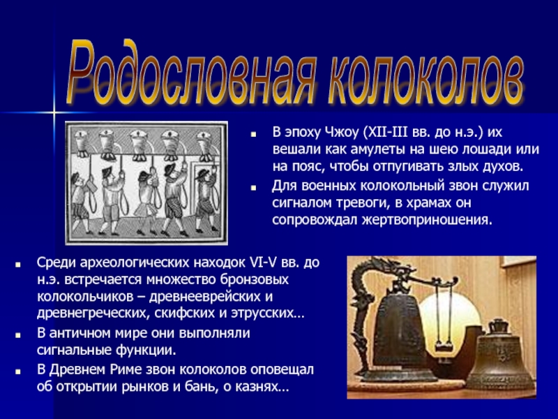 Среди археологических находок VI-V вв. до н.э. встречается множество бронзовых колокольчиков – древнееврейских и древнегреческих, скифских и этрусских…