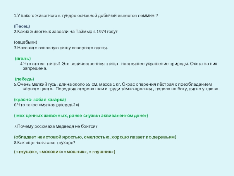 1.В тундре и лесотундре растёт низкий ветвистый кустарничек высотой