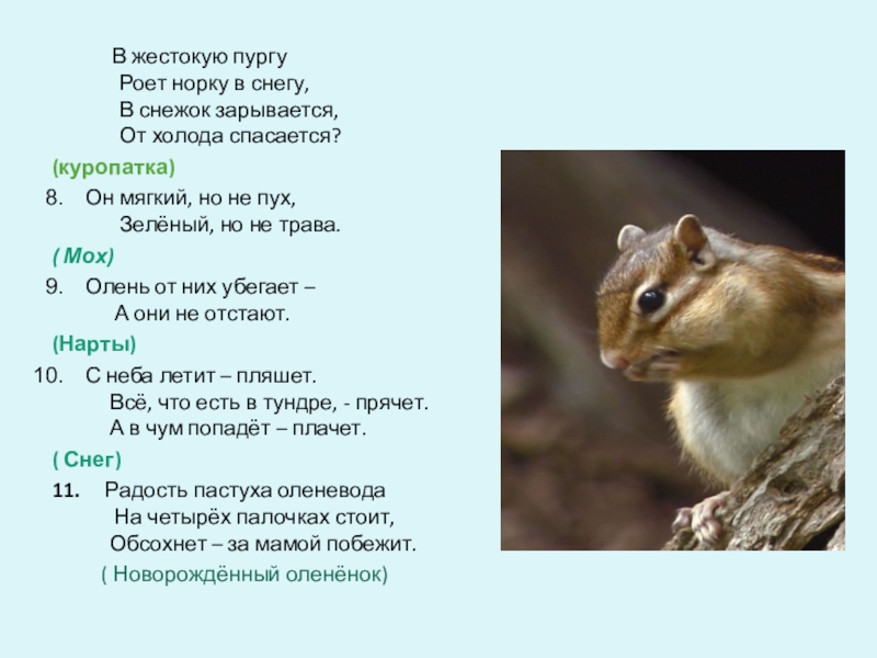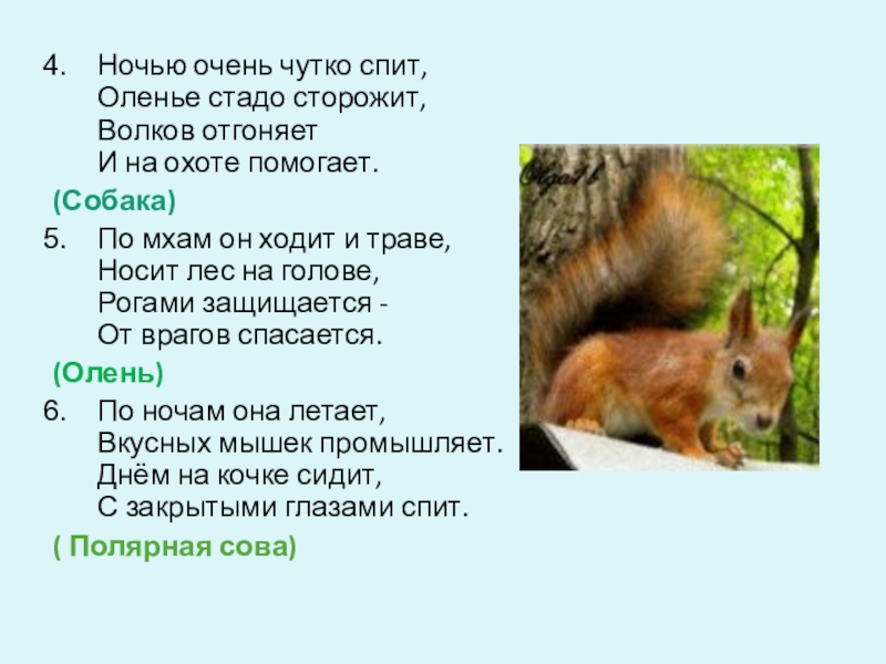 4.О каком животном идёт речь? Зимний мех очень густой длинный, остевые волосы пустотелы, наполнены воздухом, пуховые волосы тонкие, извилистые. Мех очень тёплый , непроницаемый для ветра, медленно намокает.