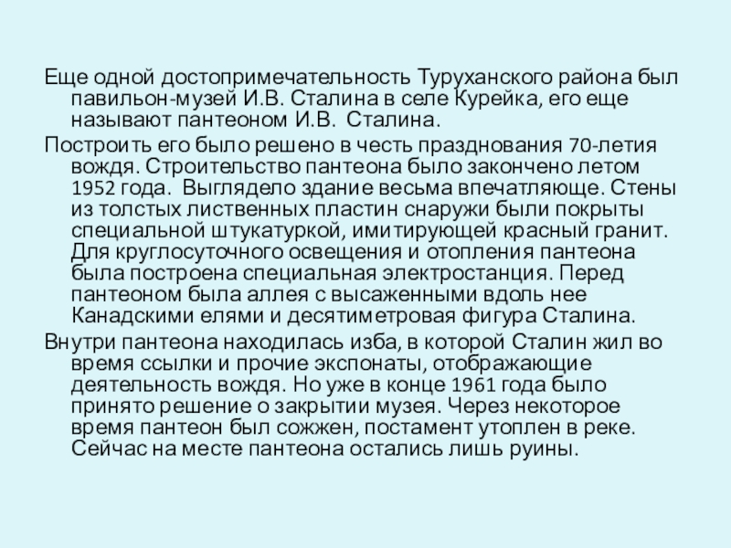 Еще одной достопримечательность Туруханского района был павильон-музей И.В. Сталина в селе