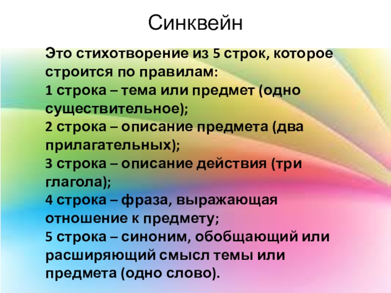5 строка – синоним, обобщающий или расширяющий смысл темы или предмета (одно слово).