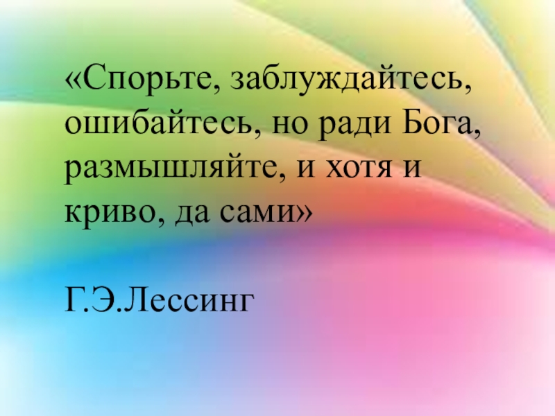 Слайд 1«Спорьте, заблуждайтесь, ошибайтесь, но ради Бога,
