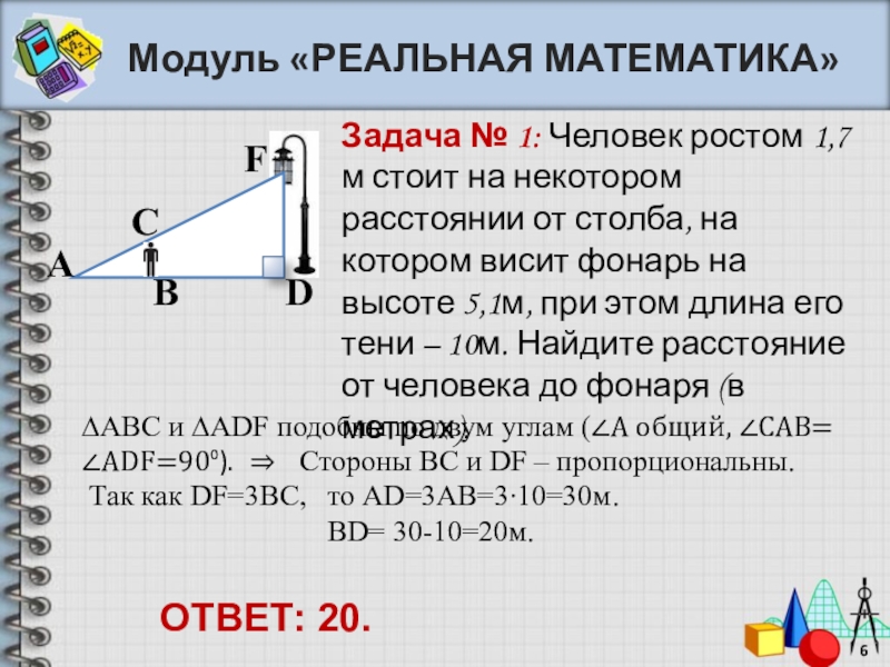 то АD=3АВ=3∙10=30м. BD= 30-10=20м.