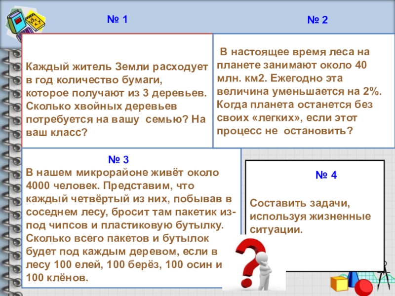Составить задачи, используя жизненные ситуации.