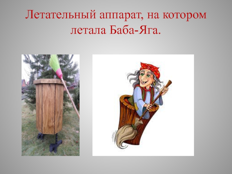 Слайд 8 Летательный аппарат, на котором летала Баба-Яга.