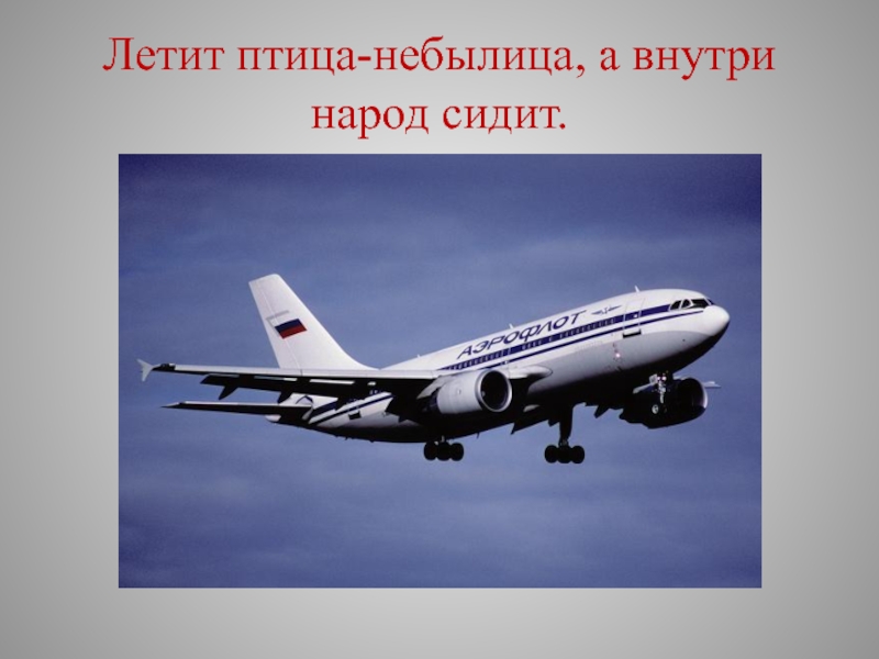 Слайд 4 Летит птица-небылица, а внутри народ сидит.