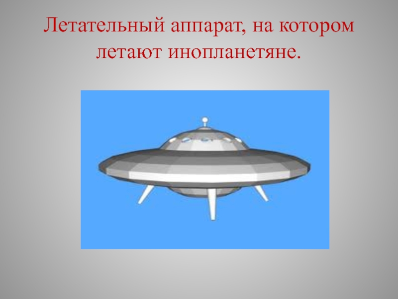 Слайд 5 Летательный аппарат, на котором летают инопланетяне.
