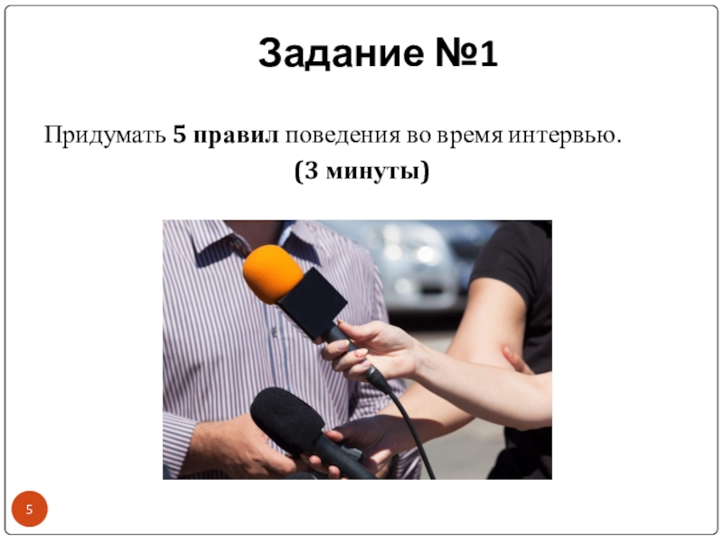 Задание №1Придумать 5 правил поведения во время интервью. (3 минуты)