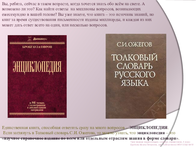 Единственная книга, способная ответить сразу на много вопросов – ЭНЦИКЛОПЕДИЯ.