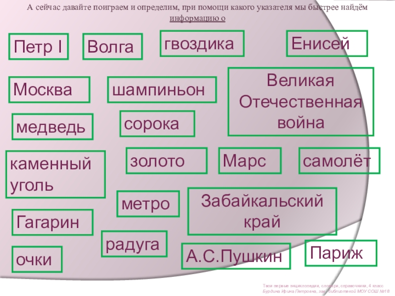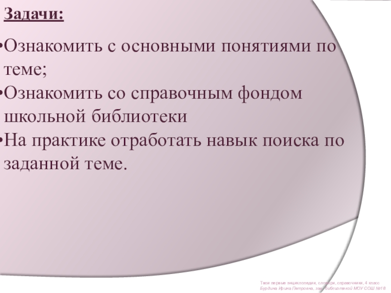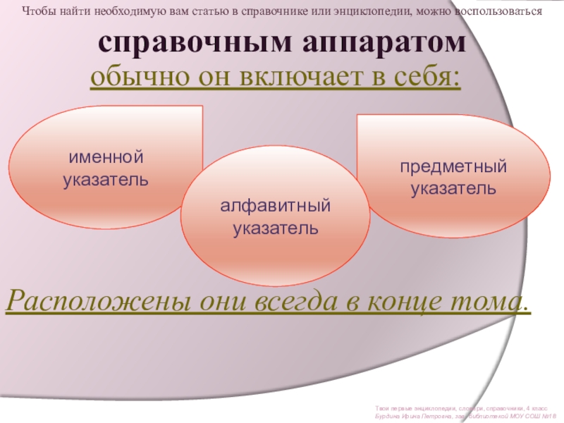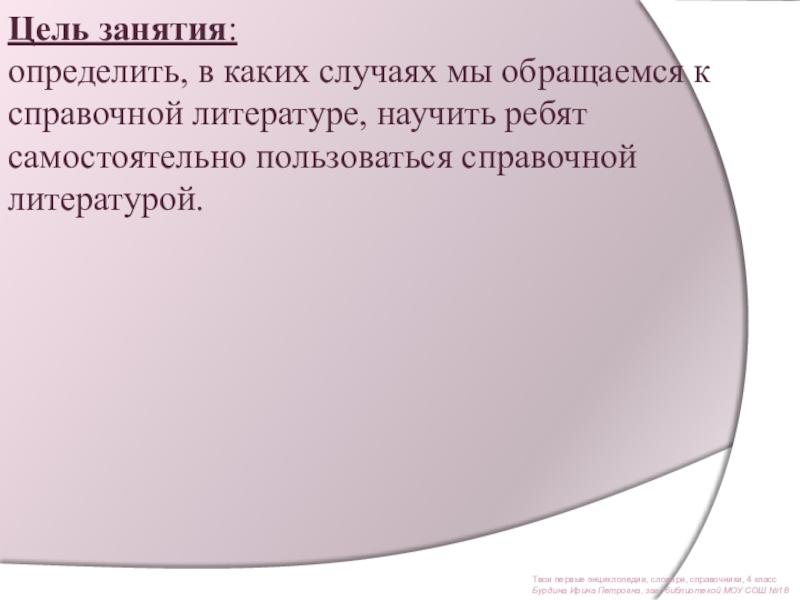 Ознакомить со справочным фондом школьной библиотеки