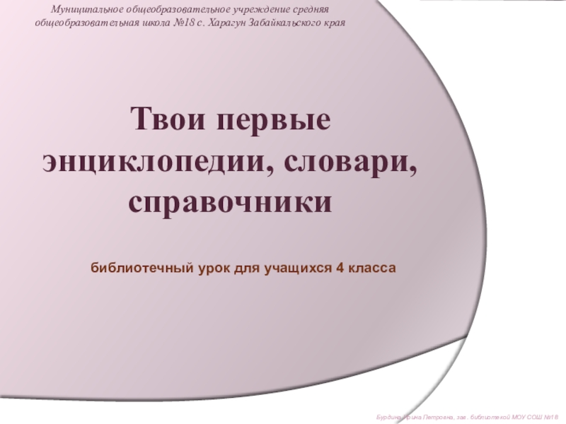 Бурдина Ирина Петровна, зав. библиотекой МОУ СОШ №18