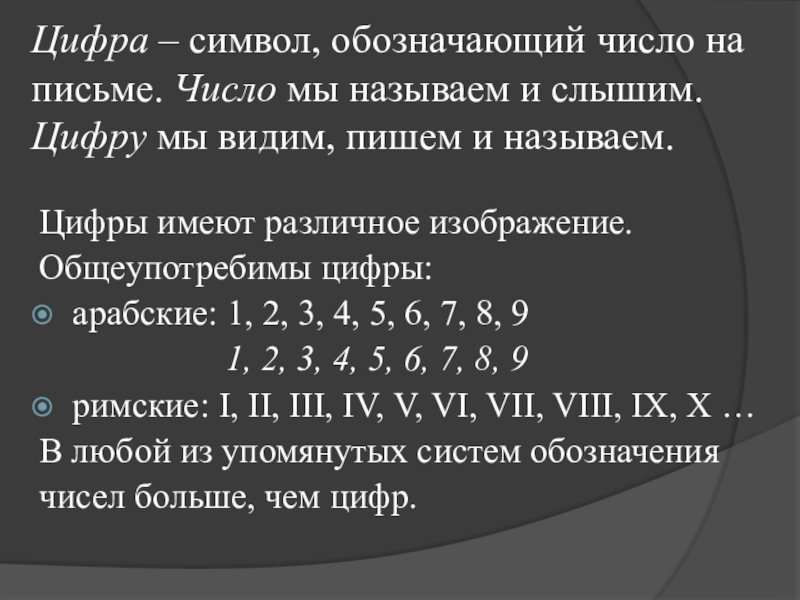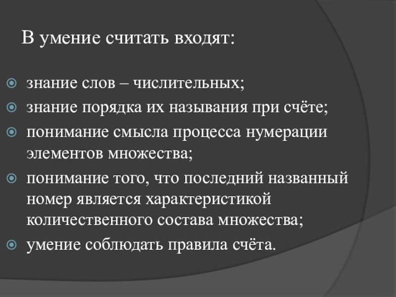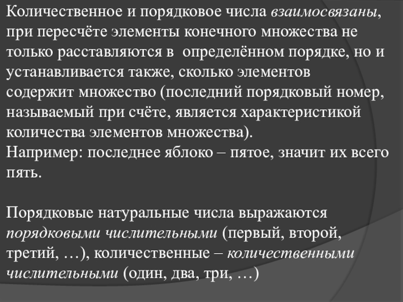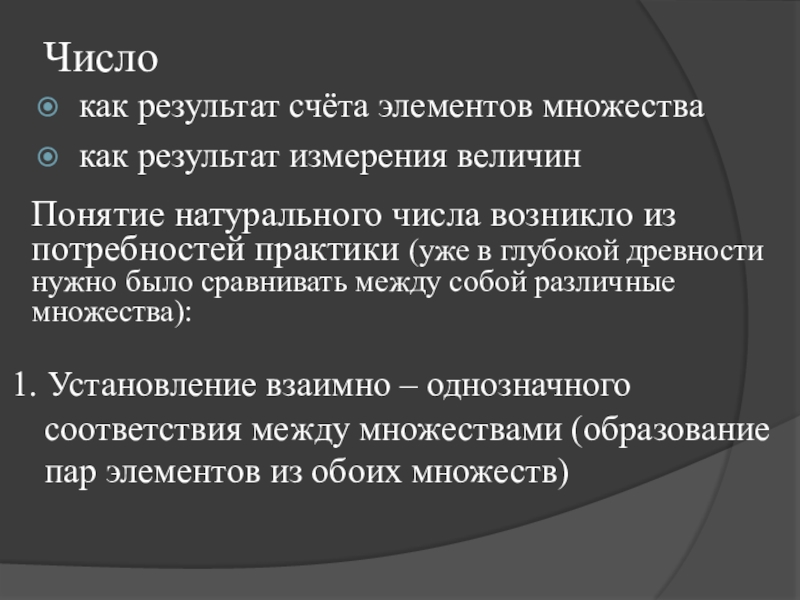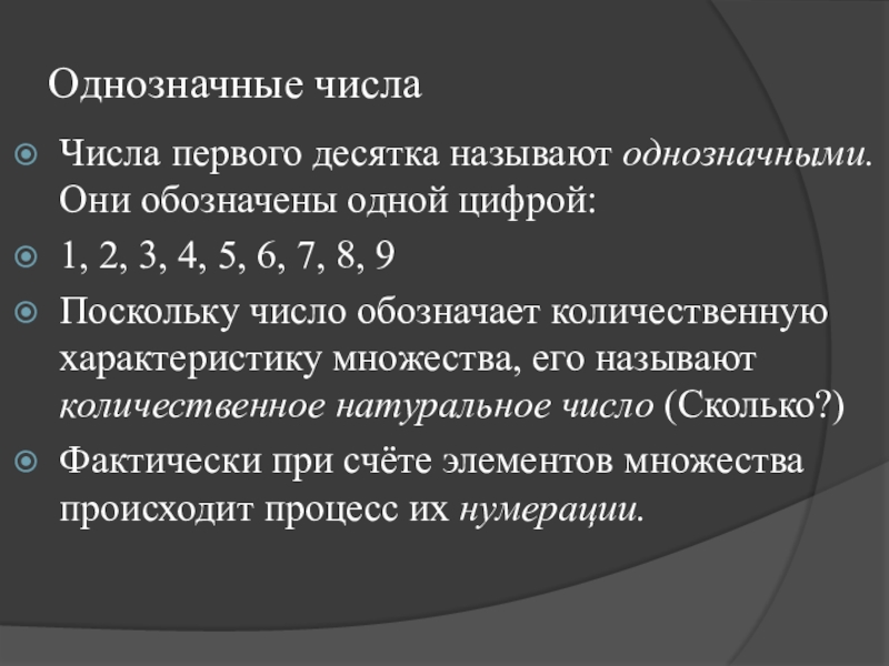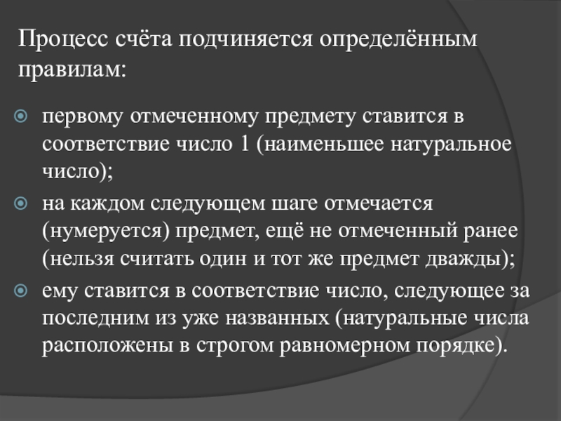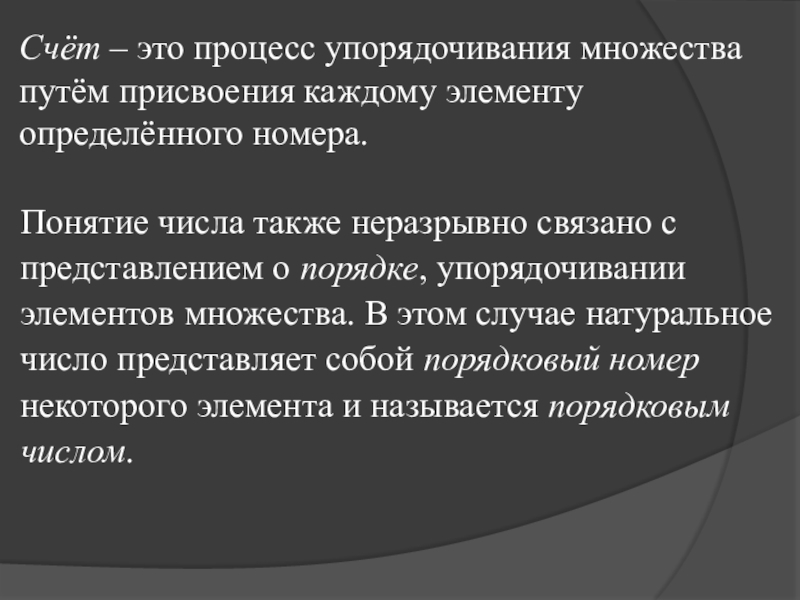 Счёт – это процесс упорядочивания множества путём присвоения каждому элементу определённого номера.