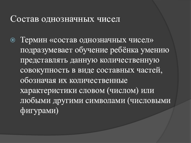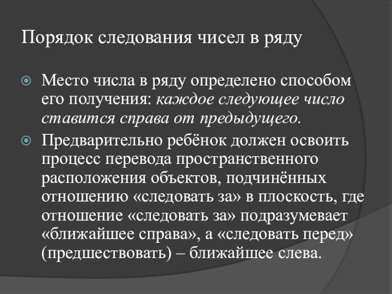 Усвоение ребёнком этого принципа является центральной задачей изучения нумерации первого десятка в школе.