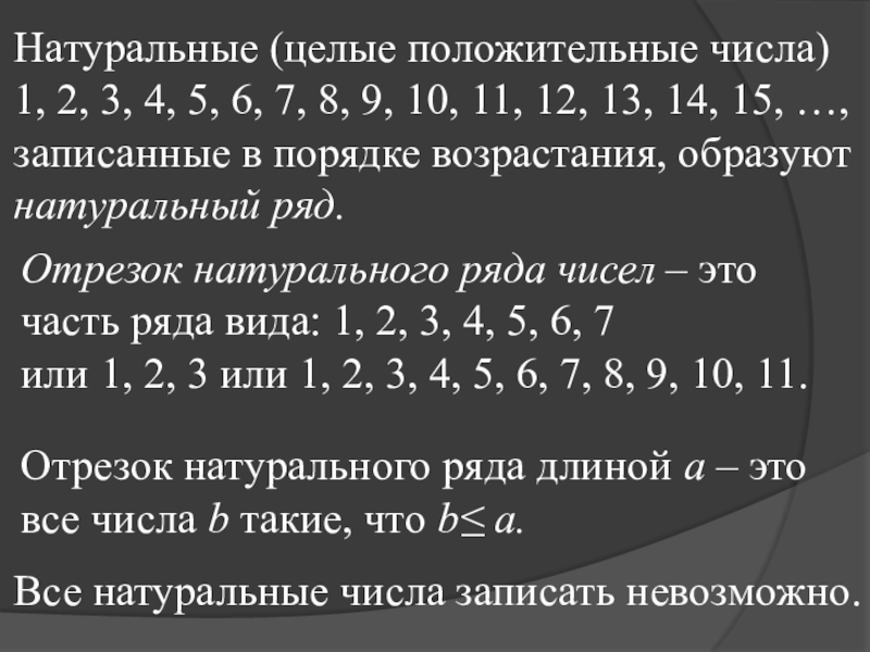 Отрезок натурального ряда длиной а – это все числа b такие, что b≤ а.