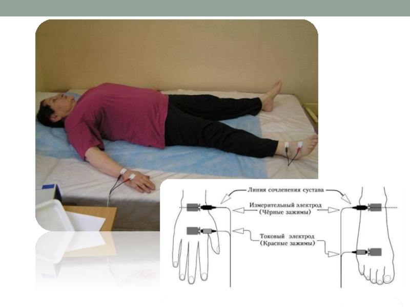 · К руке и ноге подсоединяются электроды, подключенные к анализатору.