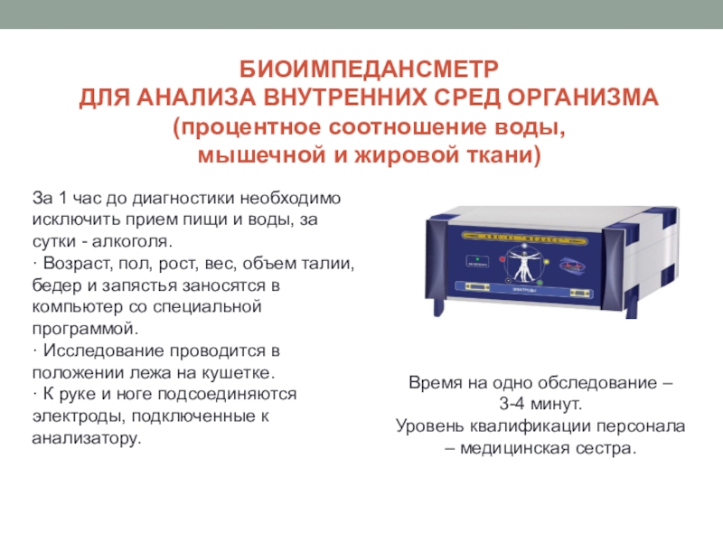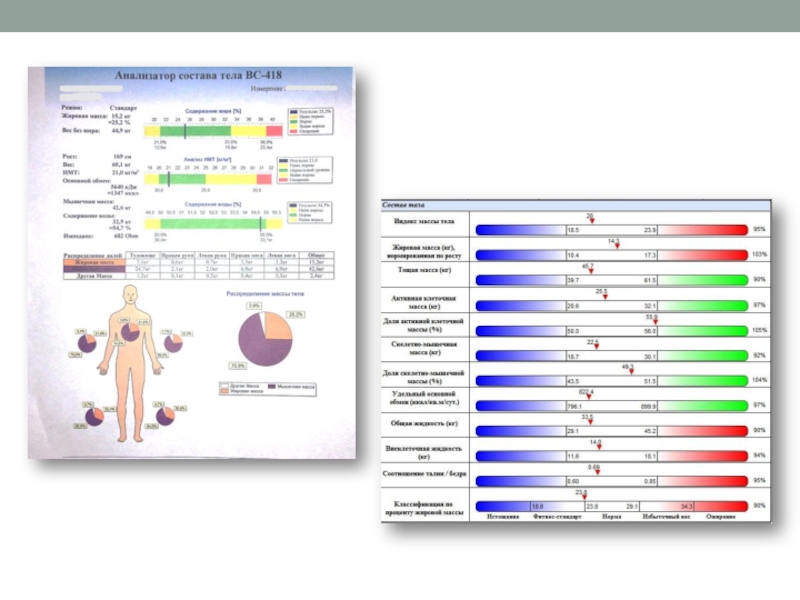 · Возраст, пол, рост, вес, объем талии, бедер и запястья заносятся в компьютер со специальной программой.