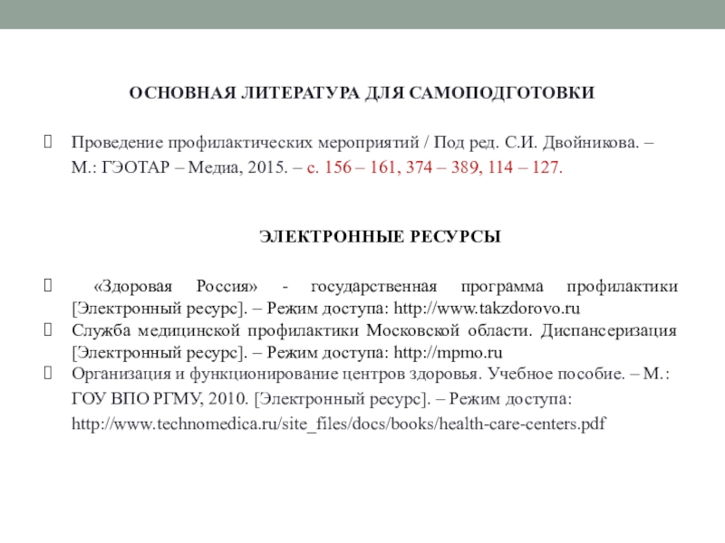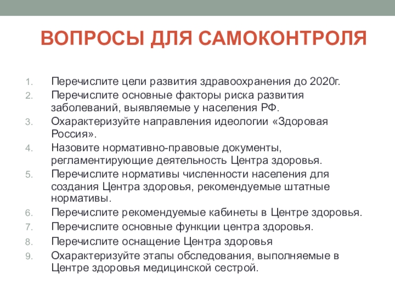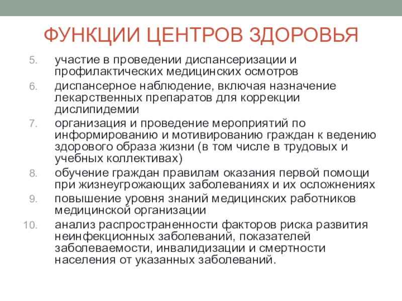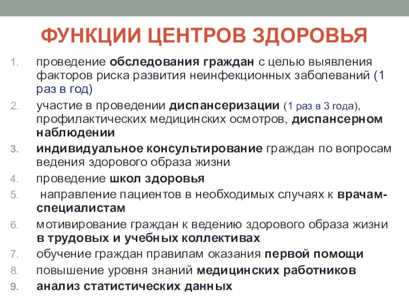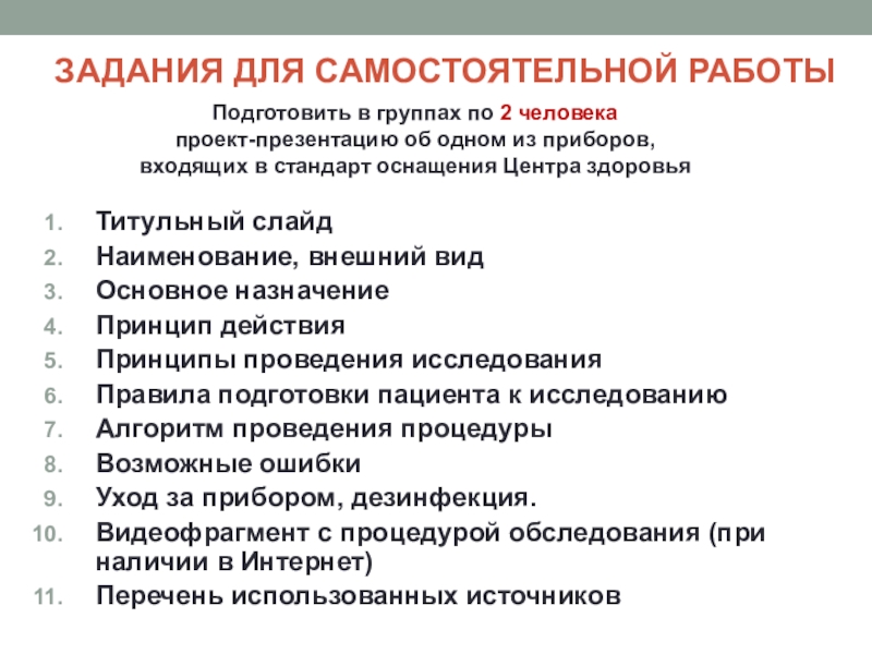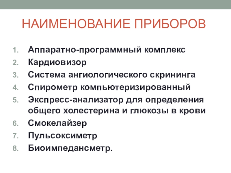 входящих в стандарт оснащения Центра здоровья