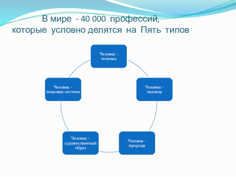 Слайд 3В мире - 40 000 профессий, которые условно делятся на Пять