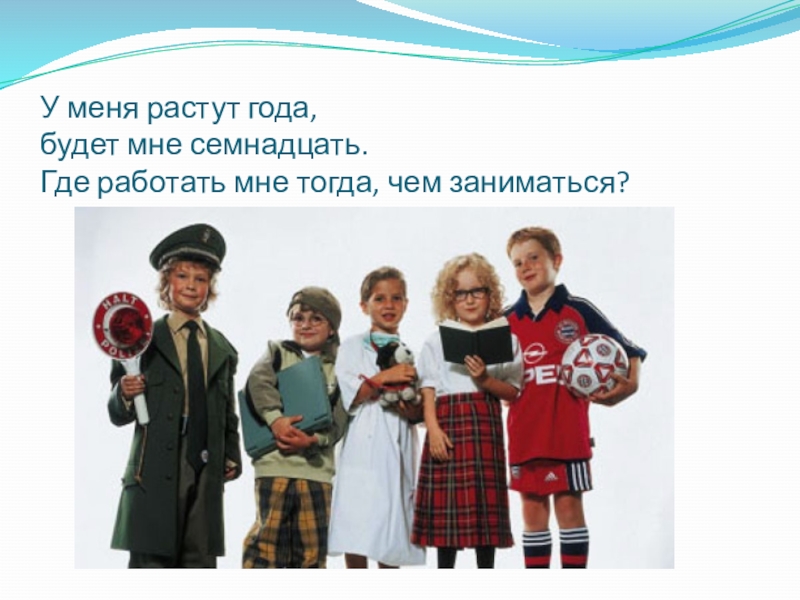 Слайд 4 У меня растут года, будет мне семнадцать. Где работать мне тогда, чем
