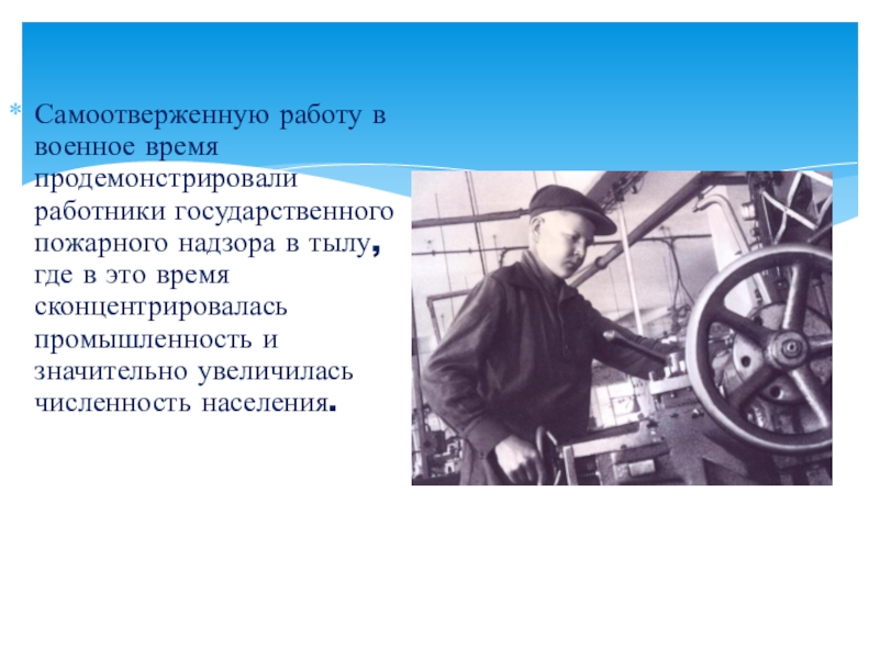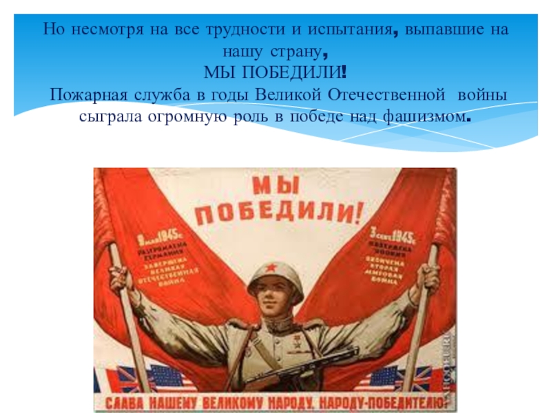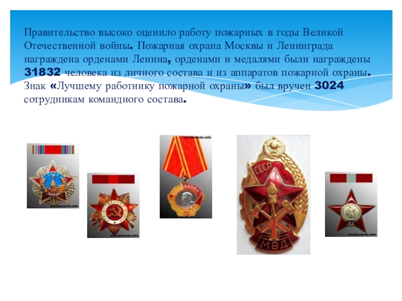 Слайд 27Правительство высоко оценило работу пожарных в годы Великой Отечественной войны. Пожарная