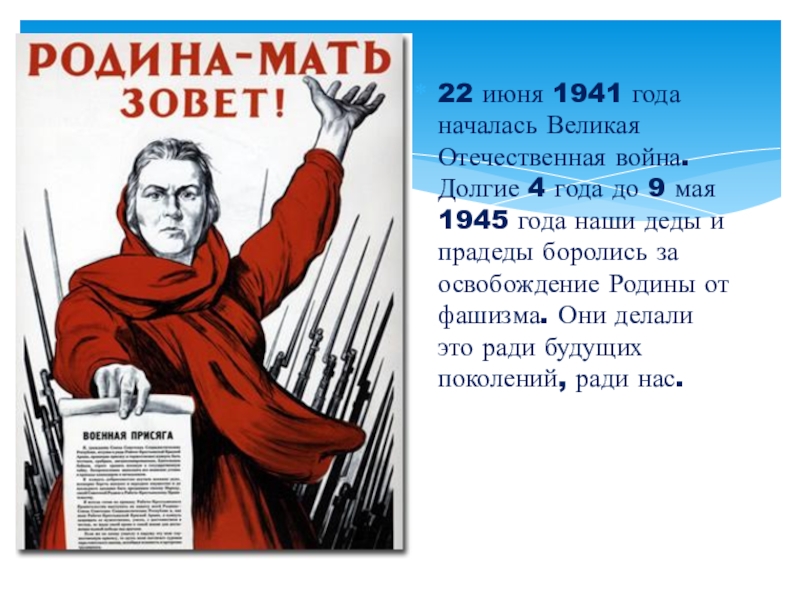 до 9 мая 1945 года наши деды и прадеды боролись за освобождение Родины от фашизма. Они делали это ради будущих поколений, ради нас.