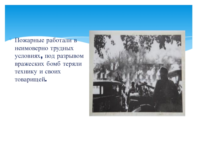 Слайд 24Большой героизм проявили в борьбе с огнем пожарные блокадного Ленинграда. Только