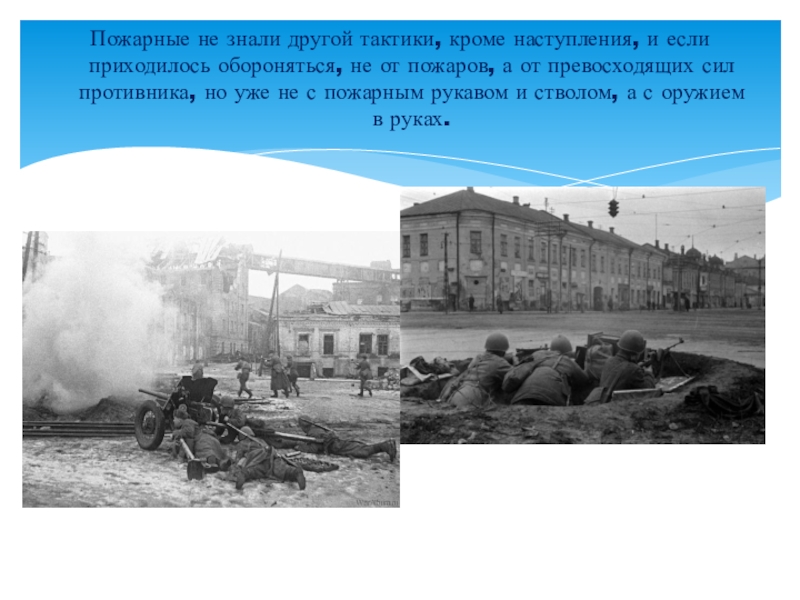 Слайд 23Пожарные не знали другой тактики, кроме наступления, и если приходилось обороняться,