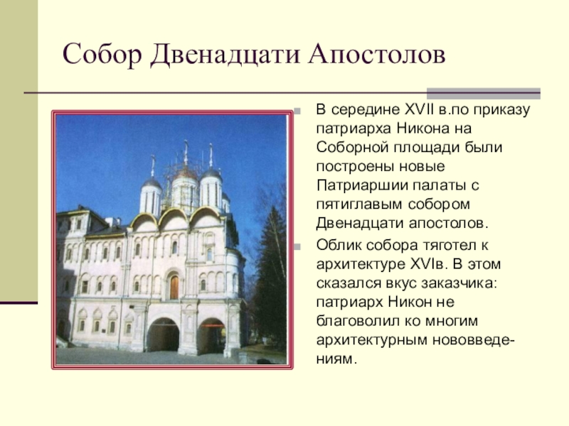 площади были построены новые Патриаршии палаты с пятиглавым собором Двенадцати апостолов.