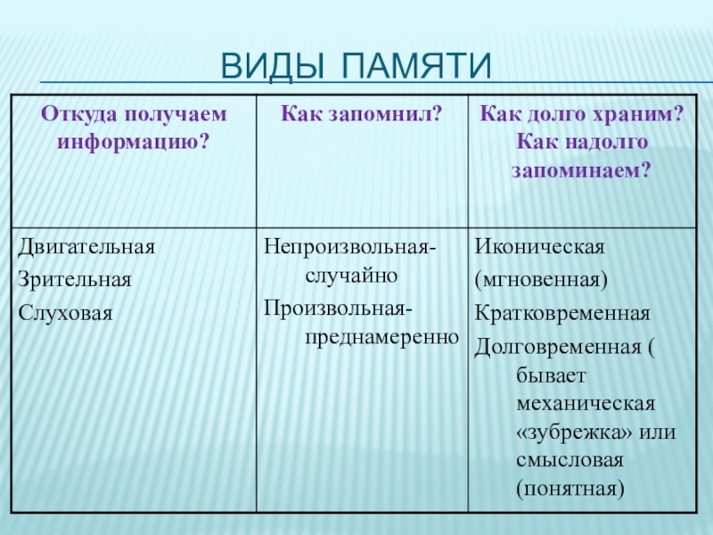ВИДЫ ПАМЯТИ И УПРАЖНЕНИЯ ДЛЯ ЕЕ РАЗВИТИЯ.