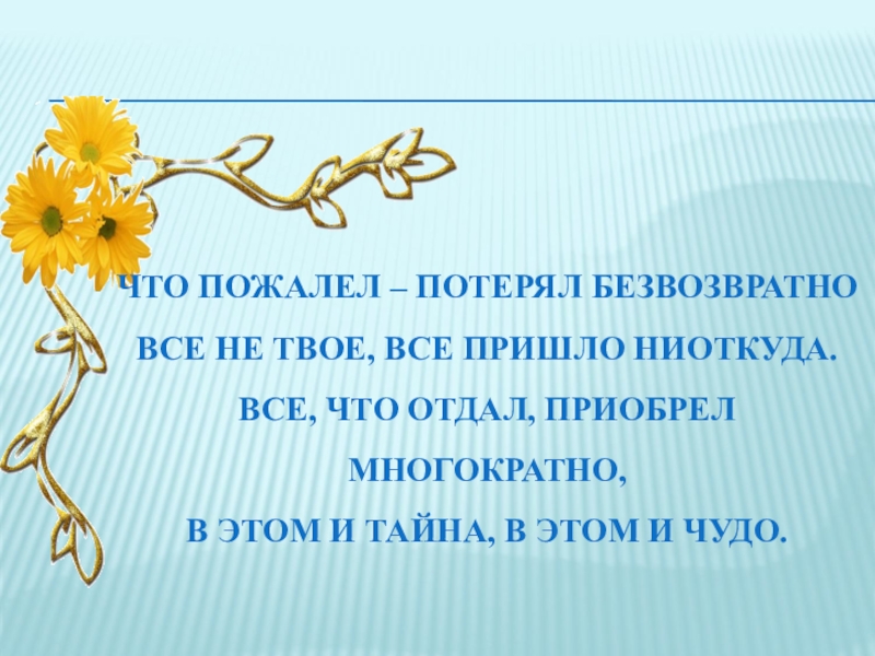 ВСЕ, ЧТО ОТДАЛ, ПРИОБРЕЛ МНОГОКРАТНО,