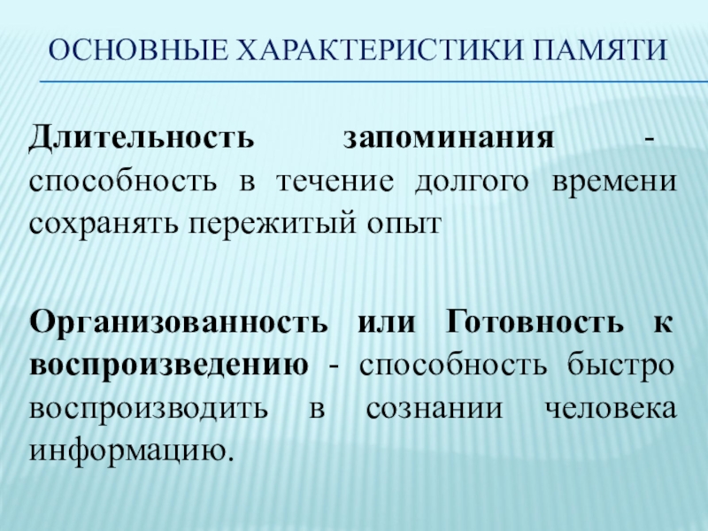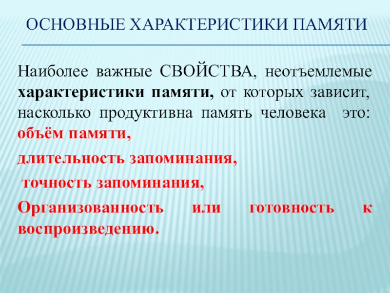 Слайд 11ОСНОВНЫЕ ХАРАКТЕРИСТИКИ ПАМЯТИ
