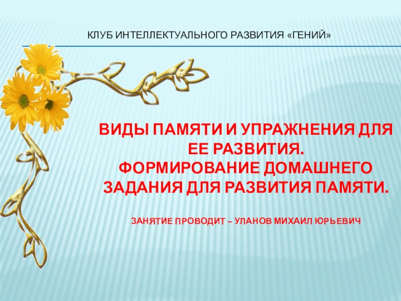 КЛУБ ИНТЕЛЛЕКТУАЛЬНОГО РАЗВИТИЯ «ГЕНИЙ»