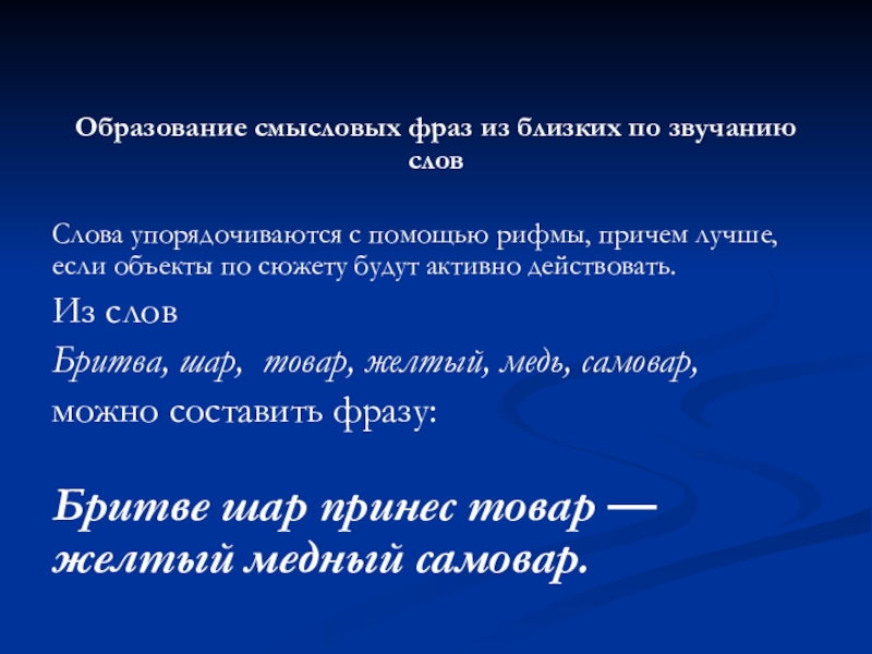 Слайд 20Образование смысловых фраз из близких по звучанию слов