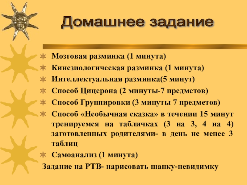 ФОРМИРОВАНИЕ ДОМАШНЕГО ЗАДАНИЯ ДЛЯ РАЗВИТИЯ ПАМЯТИ.