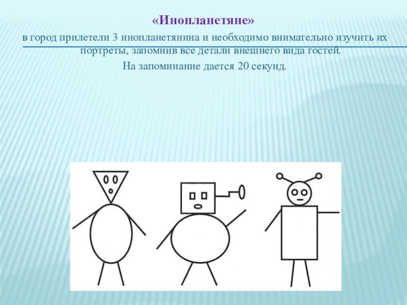 в город прилетели 3 инопланетянина и необходимо внимательно изучить их портреты,