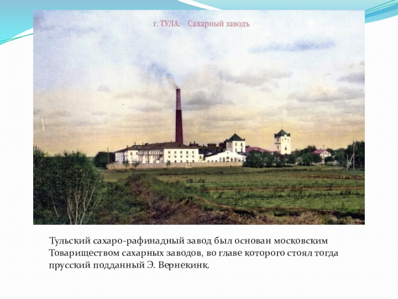 Слайд 29 Тульский сахаро-рафинадный завод был основан московским Товариществом сахарных