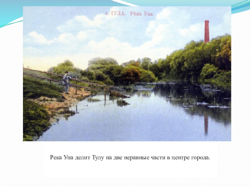Слайд 9Река Упа делит Тулу на две неравные части в центре города.