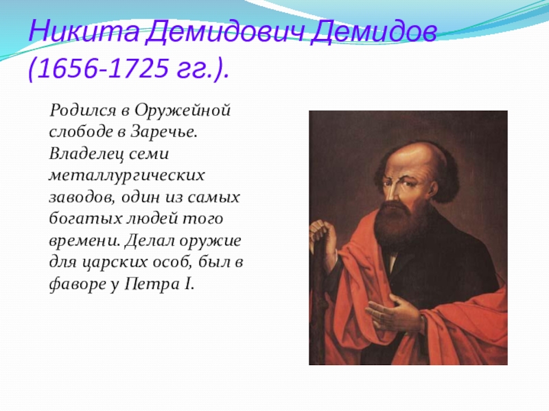 Слайд 39Никита Демидович Демидов (1656-1725 гг.).