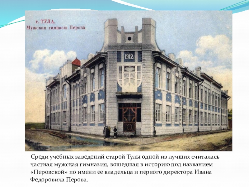 считалась частная мужская гимназия, вошедшая в историю под названием «Перовской» по имени ее владельца и первого директора Ивана Федоровича Перова.