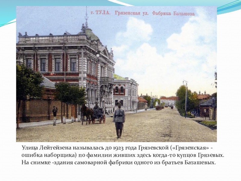 Слайд 12 Улица Лейтейзена называлась до 1923 года Грязевской («Грязенская»