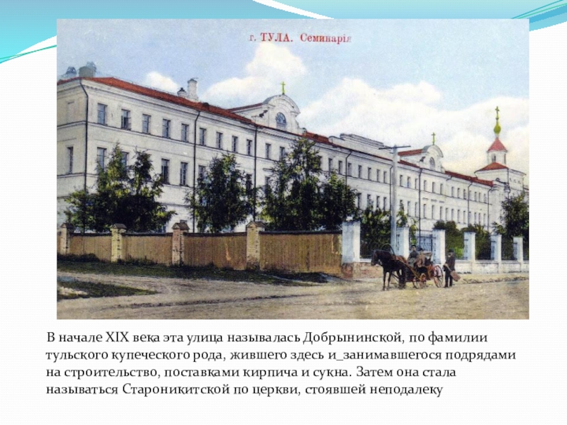 Слайд 23 В начале XIX века эта улица называлась Добрынинской,