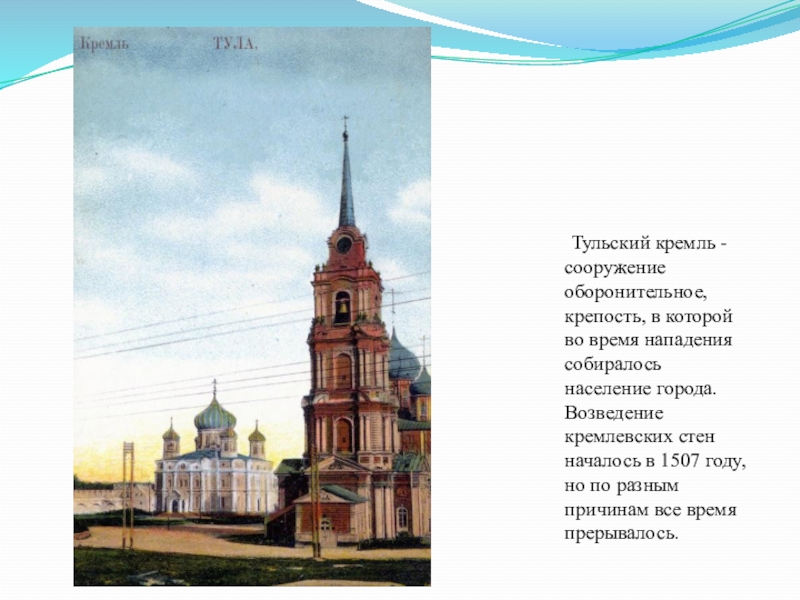 Слайд 11 Тульский кремль - сооружение оборонительное, крепость, в которой