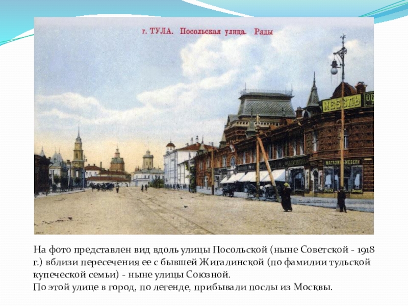 Слайд 19 На фото представлен вид вдоль улицы Посольской (ныне