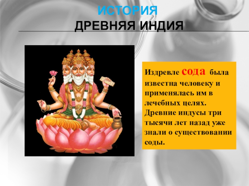 целях. Древние индусы три тысячи лет назад уже знали о существовании соды.